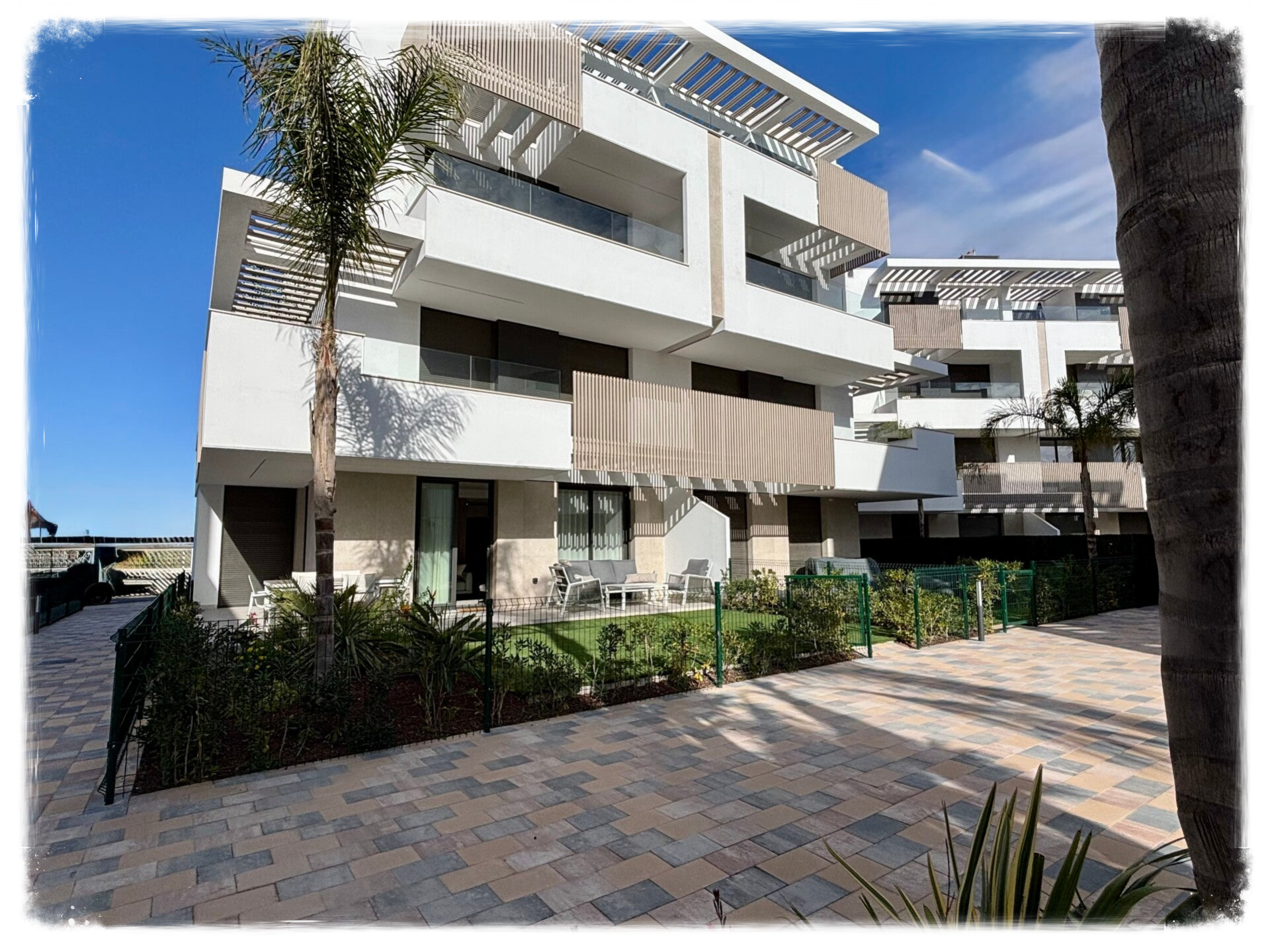 Ervaar het toppunt van ontspanning in ons appartement met drie slaapkamers en twee badkamers "Casa Bienvenido". Een open keuken biedt voldoende ruimte voor culinaire avonturen, terwijl een groot terras op het zuiden, perfect om buiten te dineren, uitkijkt op het levendige gemeenschappelijke zwembad. Geniet van ongeëvenaard comfort en stijlvol wonen.