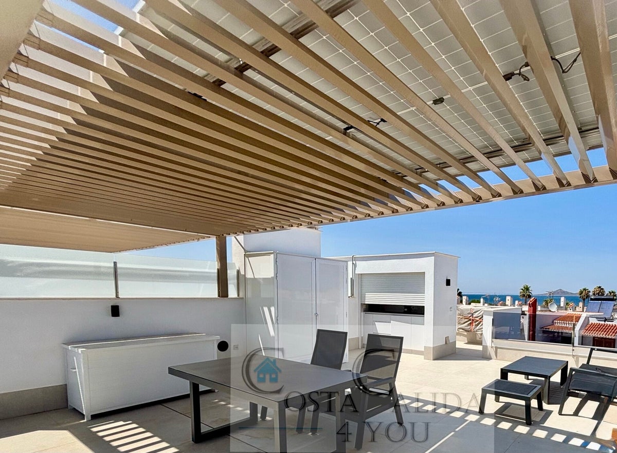 Vanuit de ruime woonkamer heb je toegang tot een fijn terras, waar je kunt genieten van je ochtendkoffie of een gezellige avond. Daarnaast beschikt het appartement over een groot solarium met een fantastisch uitzicht op het gemeenschappelijke zwembad, de bergen en de glinsterende zee.