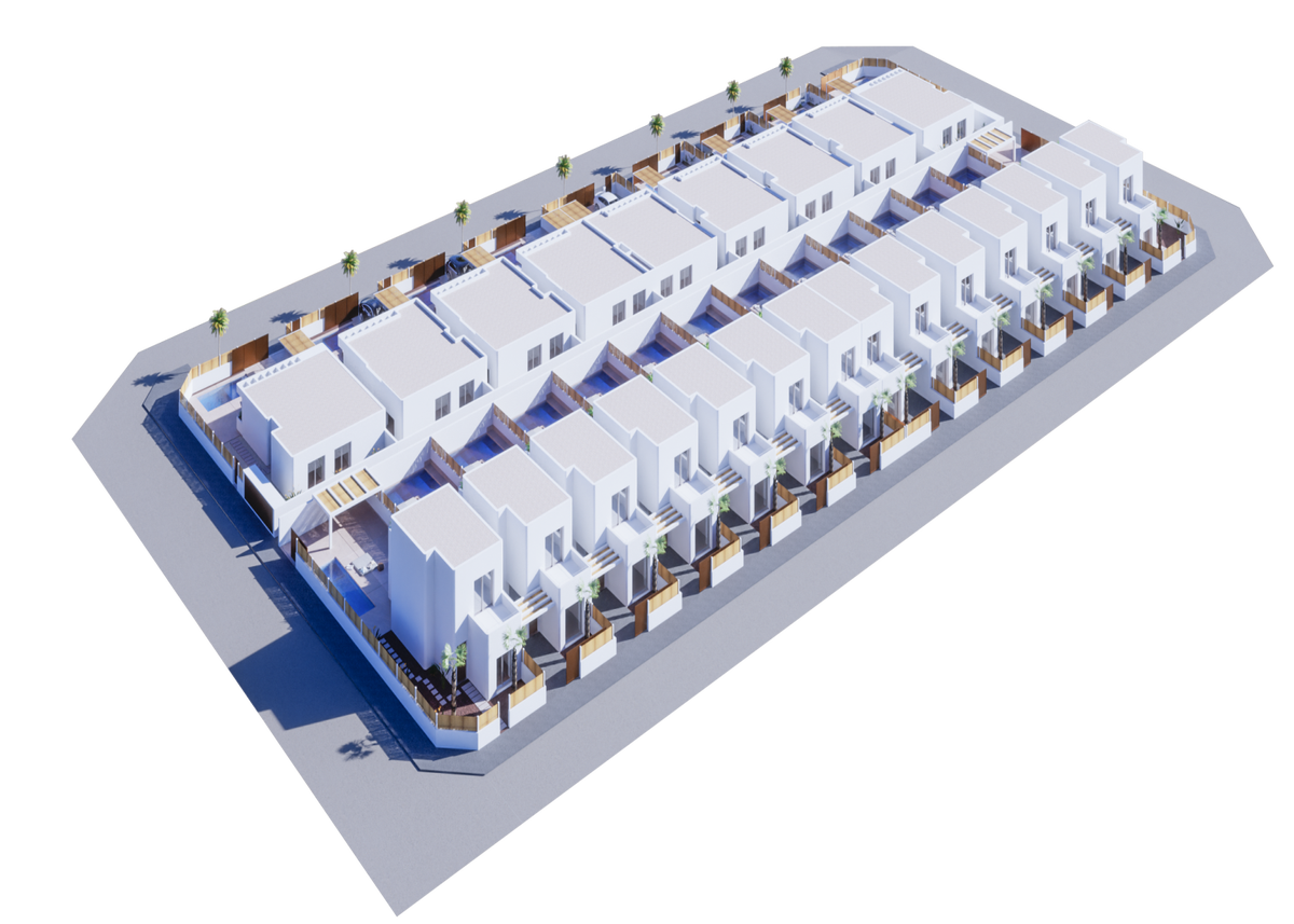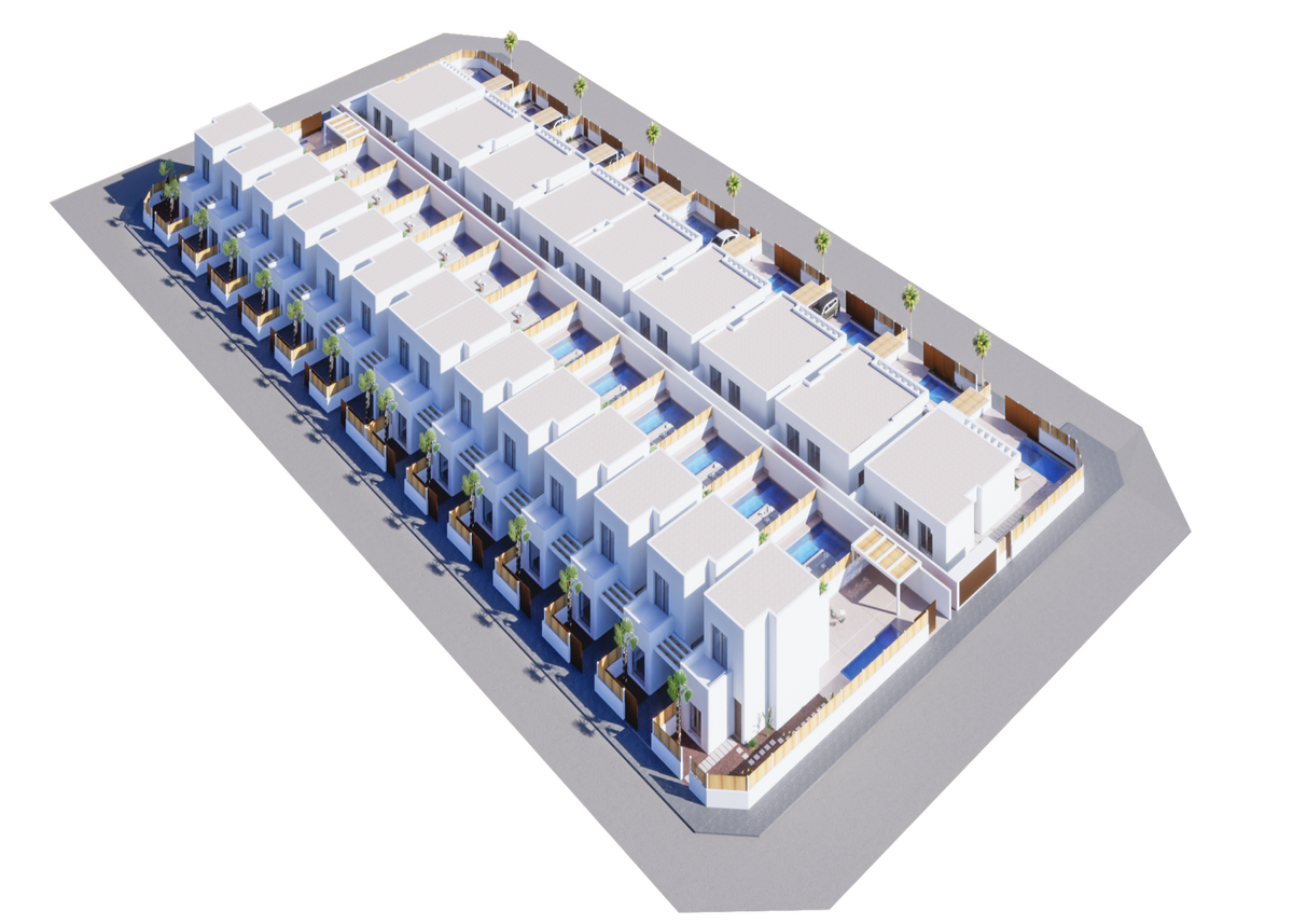 De villa's staan op percelen van tussen de 232 - 267 vierkante meter en hebben een eigen zwembad en parkeerplaats. Elke villa heeft 122 bebouwde vierkante meter verdeeld over één verdieping en het bestaat uit een lichte en ruime woonkamer met een open keuken, drie ruime slaapkamers met ingebouwde kasten en twee badkamers, waarvan er één en-suite is met de hoofdslaapkamer. Vanuit de woonkamer is er toegang tot de grote tuin en het terras naar het zwembad. De trap op, indien gewenst, kan een zonnig dakterras worden gebouwd met veel ruimte voor ligstoelen, terrasmeubilair of een jacuzzi.