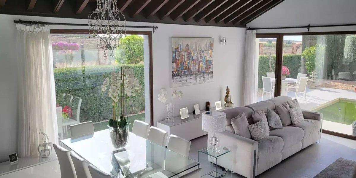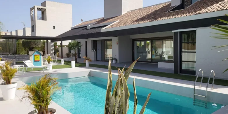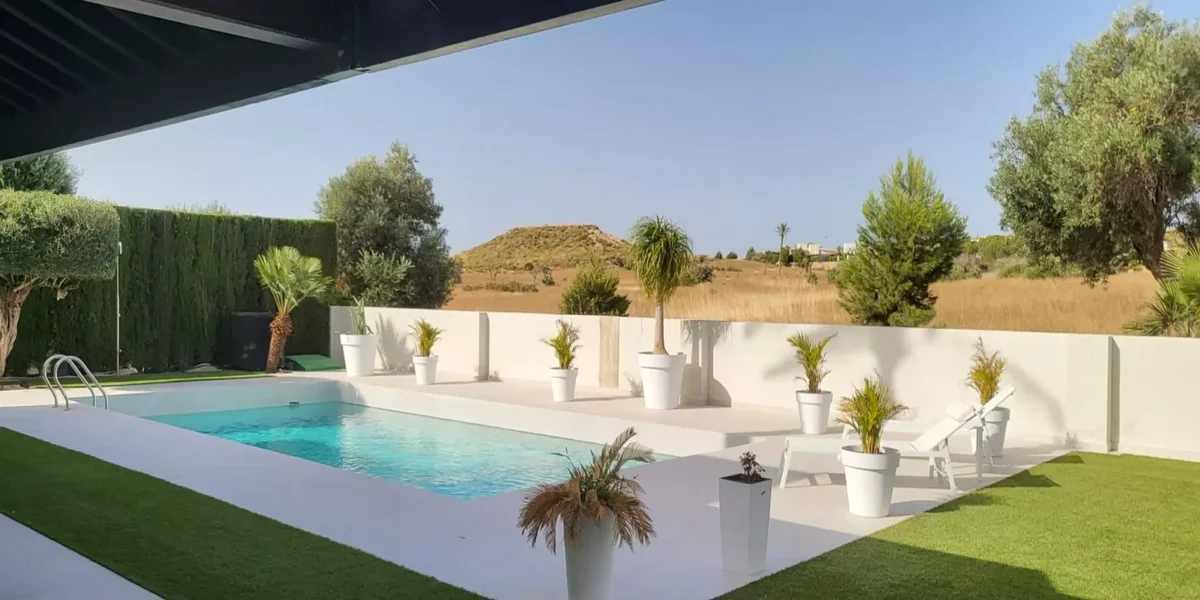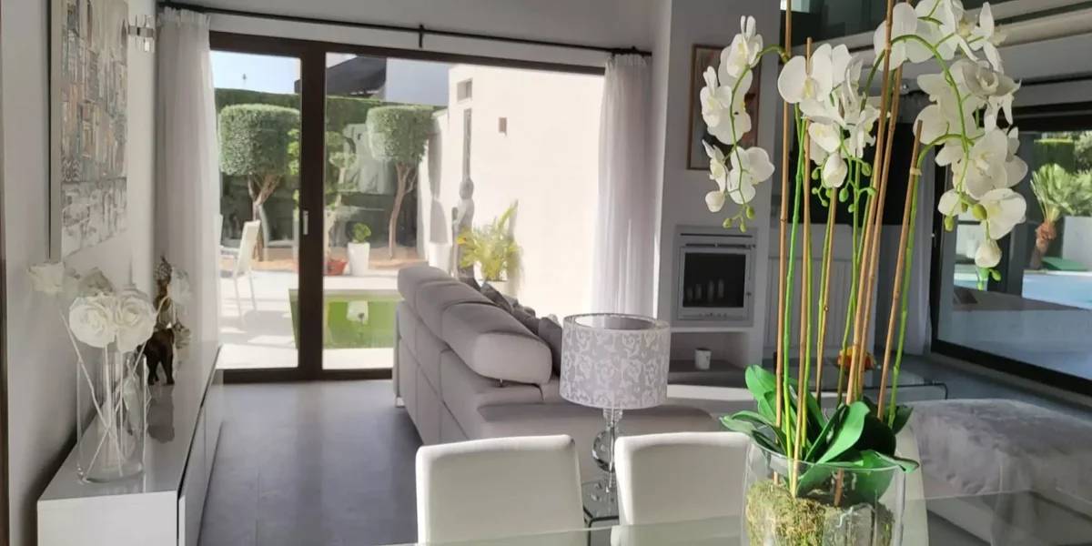 Uitstekende vrijstaande Villa Zambra op het zuidwesten op een perceel van 1.000 m2 met uitzicht op de golfbaan (de golfbaan en het clubhuis zijn momenteel gesloten, maar hebben nu een nieuwe eigenaar en de nieuwe eigenaren hopen binnenkort te kunnen heropenen).